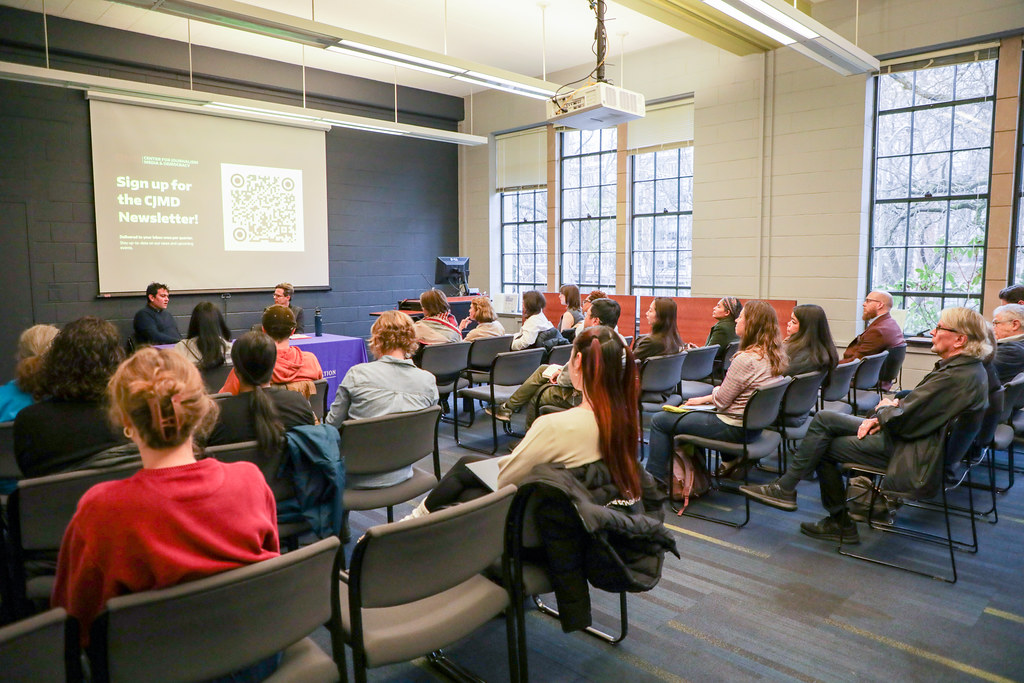 On Jan. 14 at the University of Washington, the Center for Journalism, Media, and Democracy (CJMD) hosted a discussion on political violence in the U.S. with The New Yorker staff writer Benjamin Wallace-Wells. Around 40 to 50 people filled the room, all students, faculty, staff, and community members interested in or studying journalism, communication, political science, and related fields.